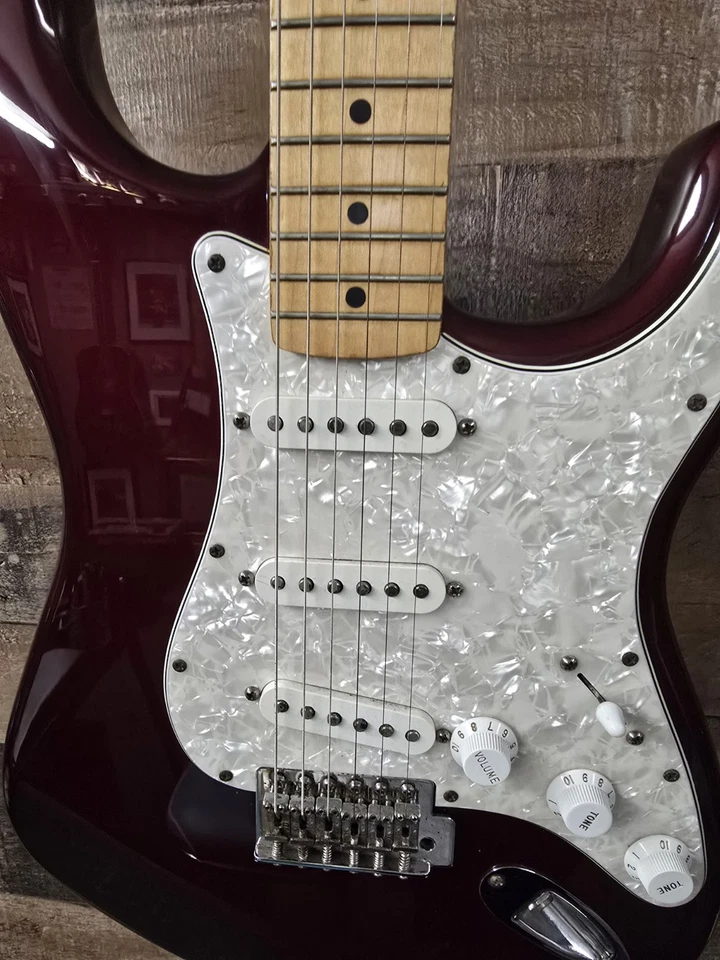 1995 Fender Standard Stratocaster made in Mexico, finished in Burgundy. A great-playing Strat that delivers the classic tone and feel Fender is known for.